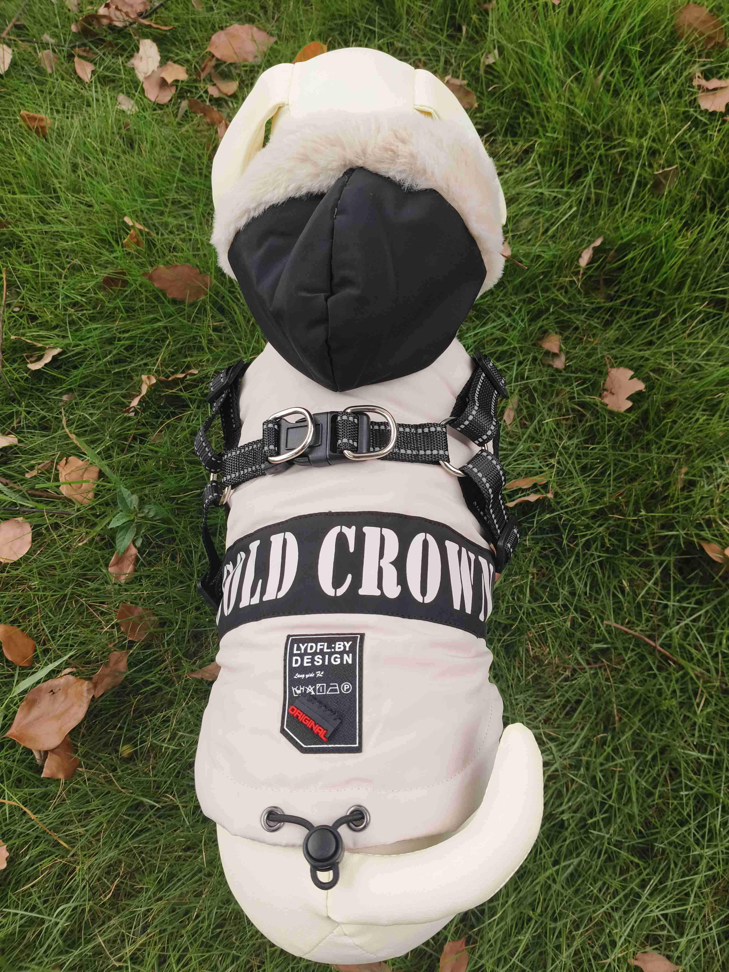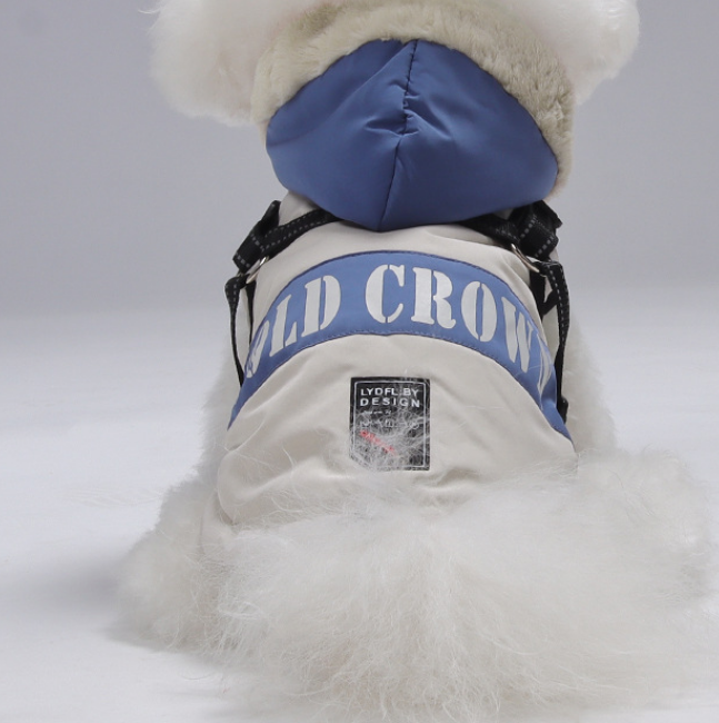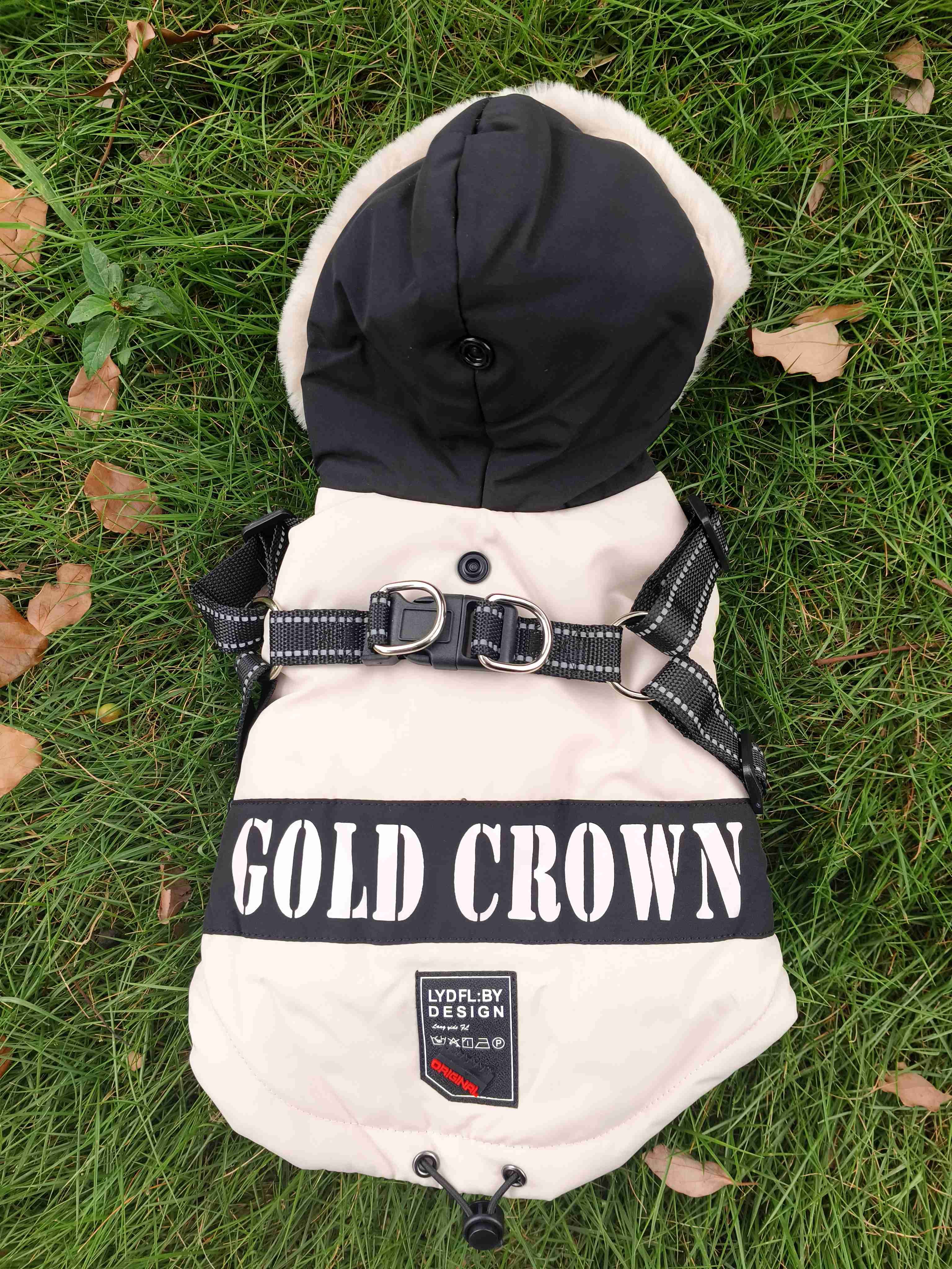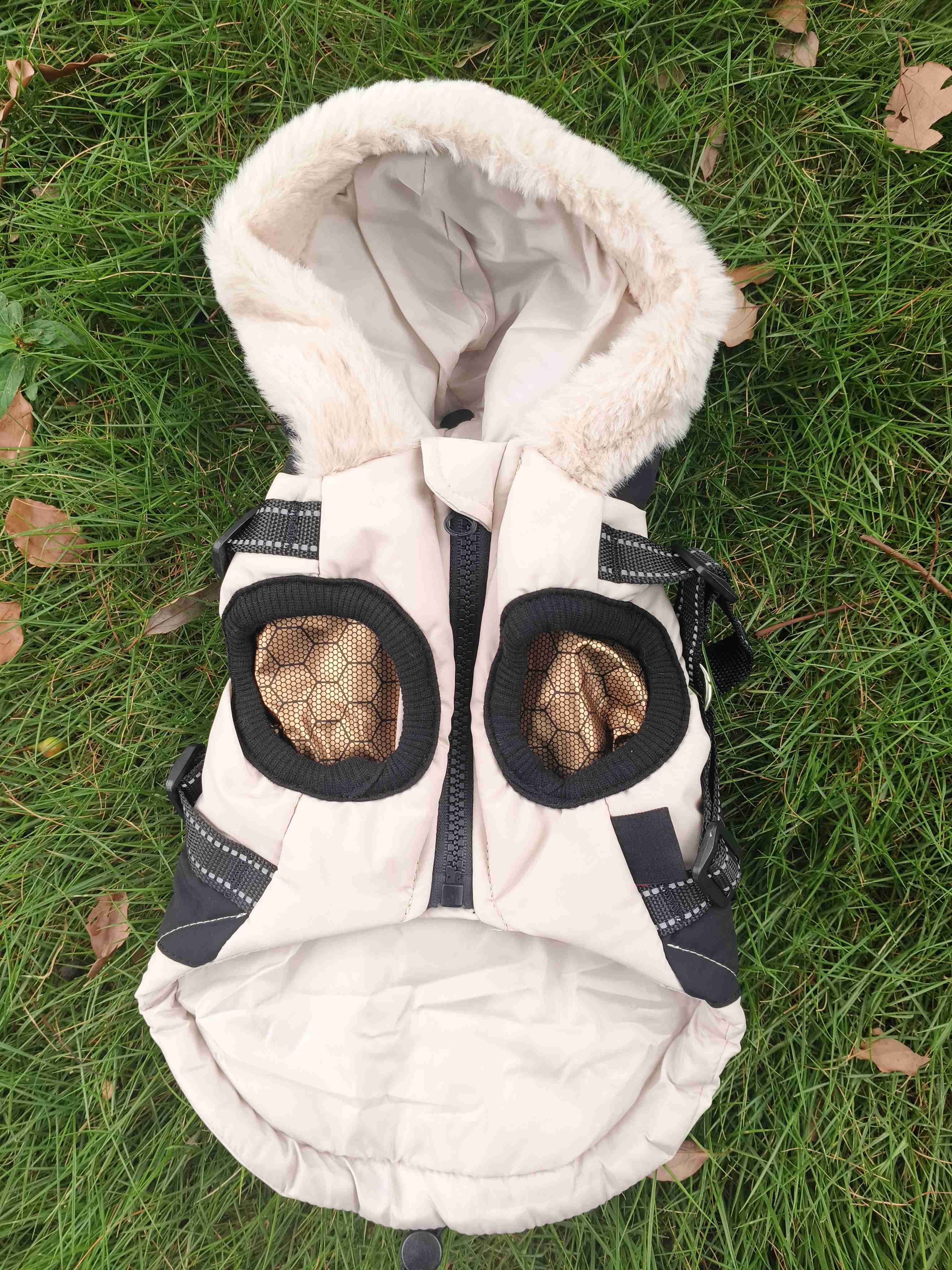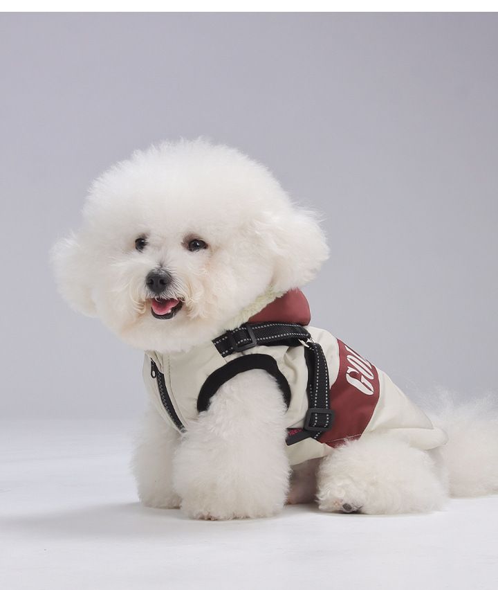 Pet clothes / Coat(F3761B-U3670) Construction:Reflective pet harness + coat Material: Waterproof coating polyester fabric Internal:silk like cotton Lining:Thermal storage graphene + Taffeta polyester Zipper:5# Resin zipper. Belt:Adjustable 2.0cm reflective webbing harness Weight:140g Size: Back length x Chest x Neck Circumference S:24X42X28CM/160g / Packing: 120pcs/50x50x50cm M:28X46X32CM/180g / Packing: 100pcs/50x50x50cm L:32X50X36CM/192g / Packing: 90pcs/50x50x50cm XL:36X54X40CM/208g / Packing: 80pcs/50x50x50cm XXL:40X58X44CM/232g / Packing: 60pcs/50x50x50cm XXXL:43X62X48CM/255g / Packing: 50pcs/50x50x50cm Packing: 1pc per polybag. Logo:1c logo printed one position. Size label: Yes Coo label:Yes