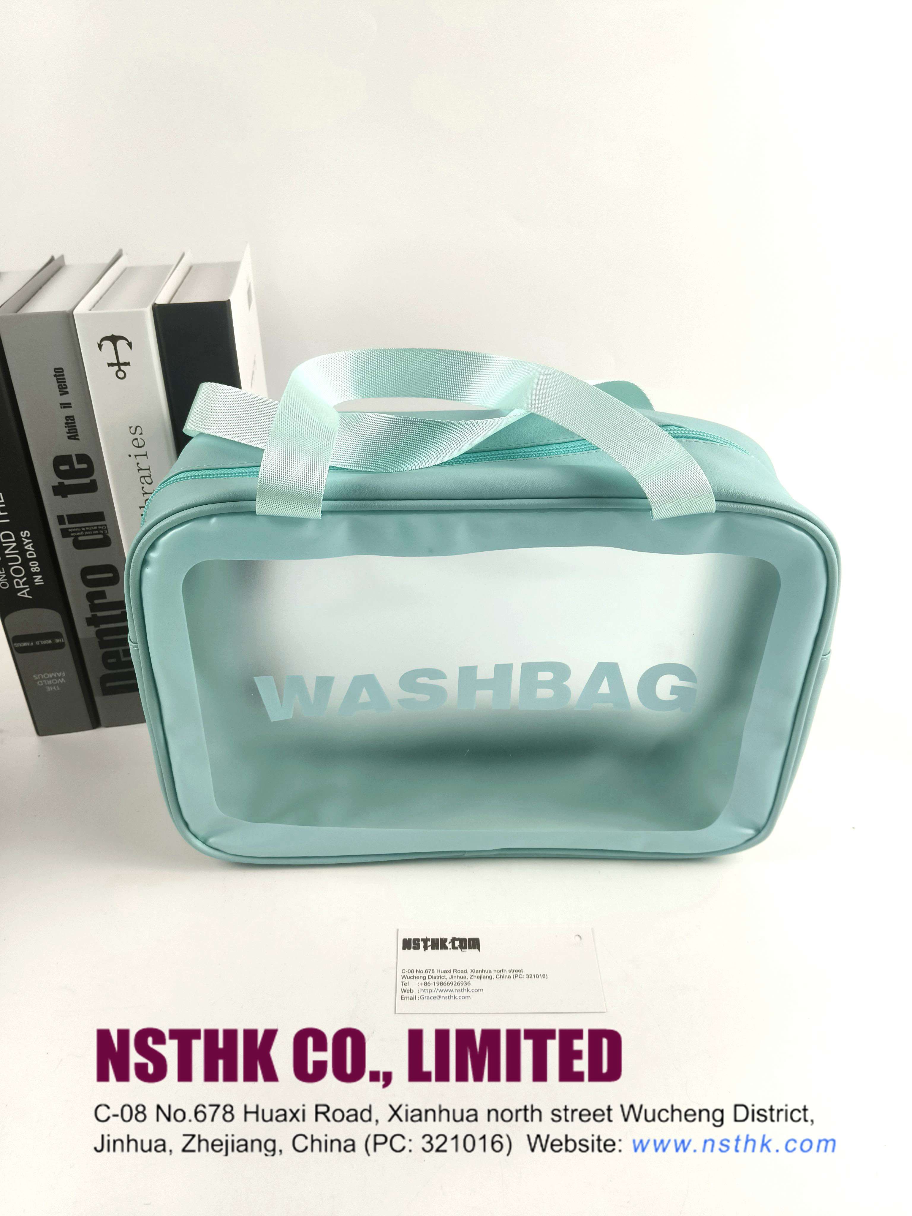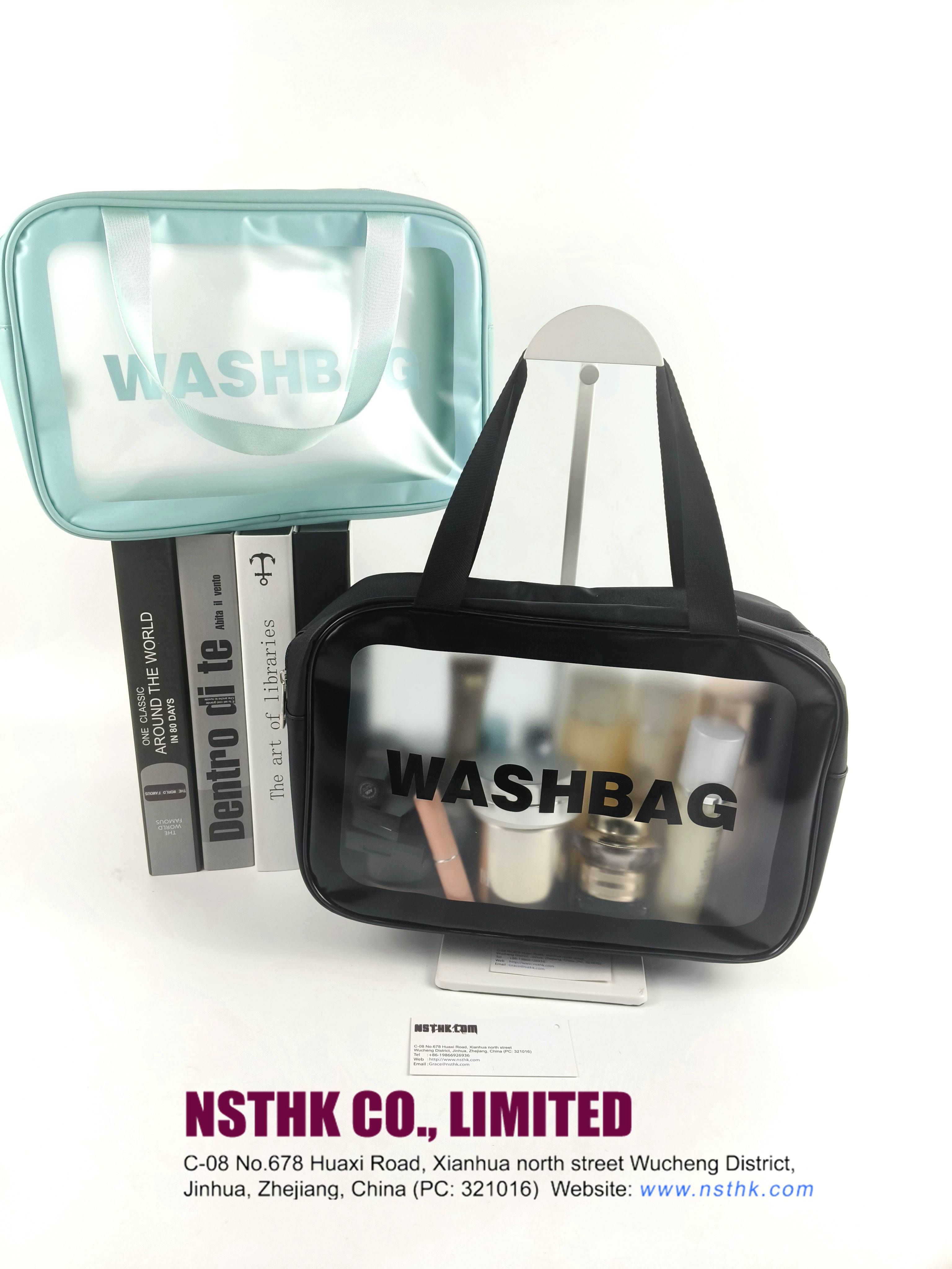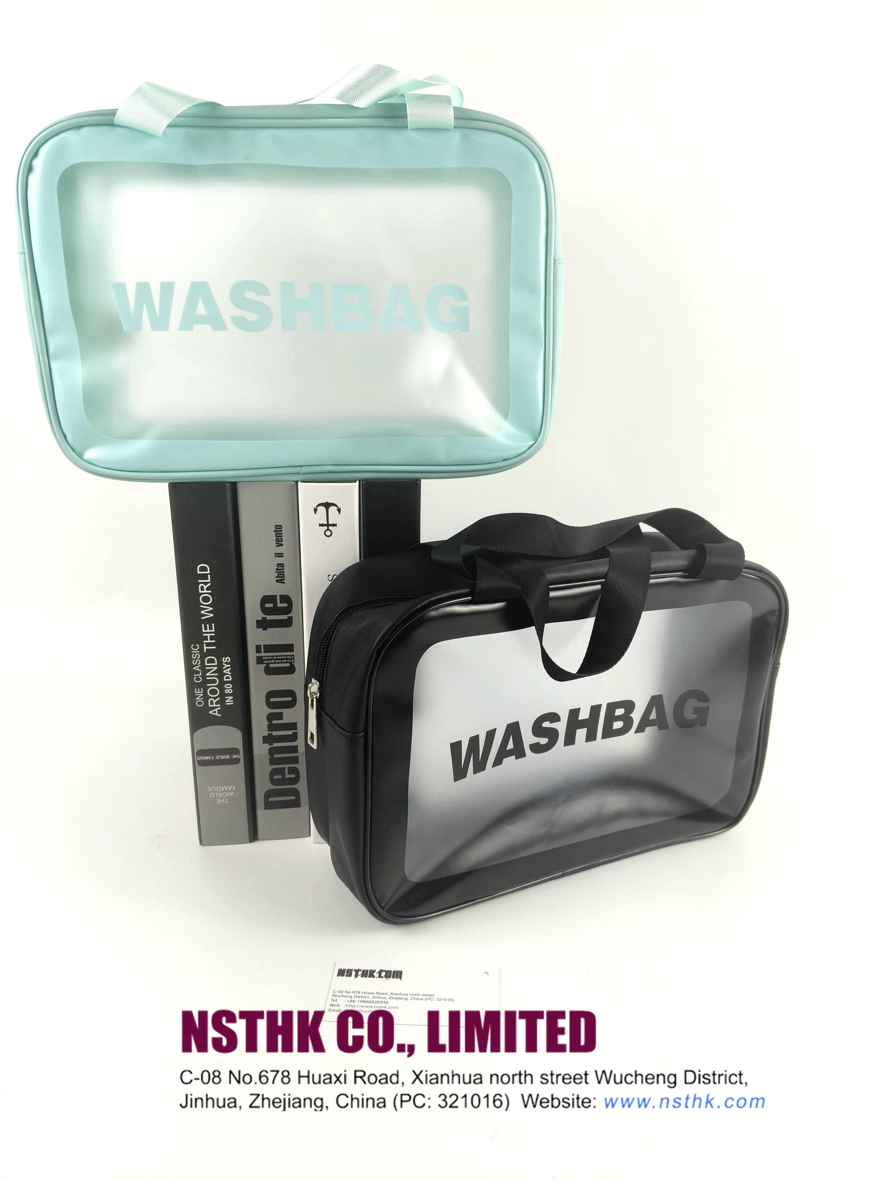 Description: translucent wash bag (F3768D) Material:0.3mm PVC + Leather Size: L219 x H 19 x W 9cm Logo: same as design Package:Flat packed, 1 x Silica Sachet,individual tissue paper wrapped. 60pcs/CTN/51x 38 x 53cm/15kgs (rough only)