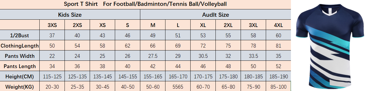 Description: Sport T shirt without contain Pants(F3806E) Material: 100% Polyester Logo: CMYK printing Size: Unisex size(please choose four sizes from the stock size sheet as below) Package:single with card backing, flat fold, insert tissue paper between T shirt,50pcs/CTN/55×40×40cm(rough only)