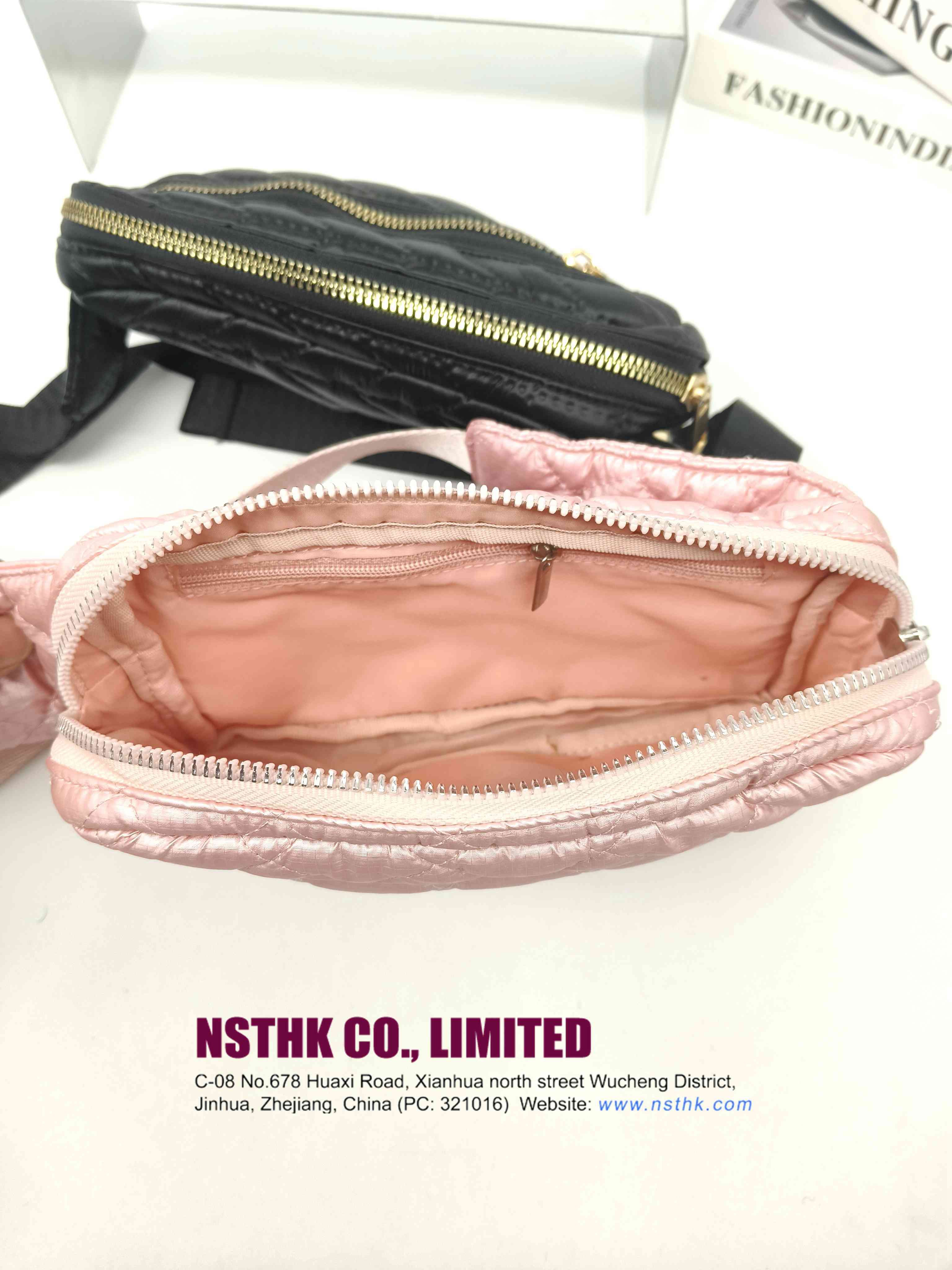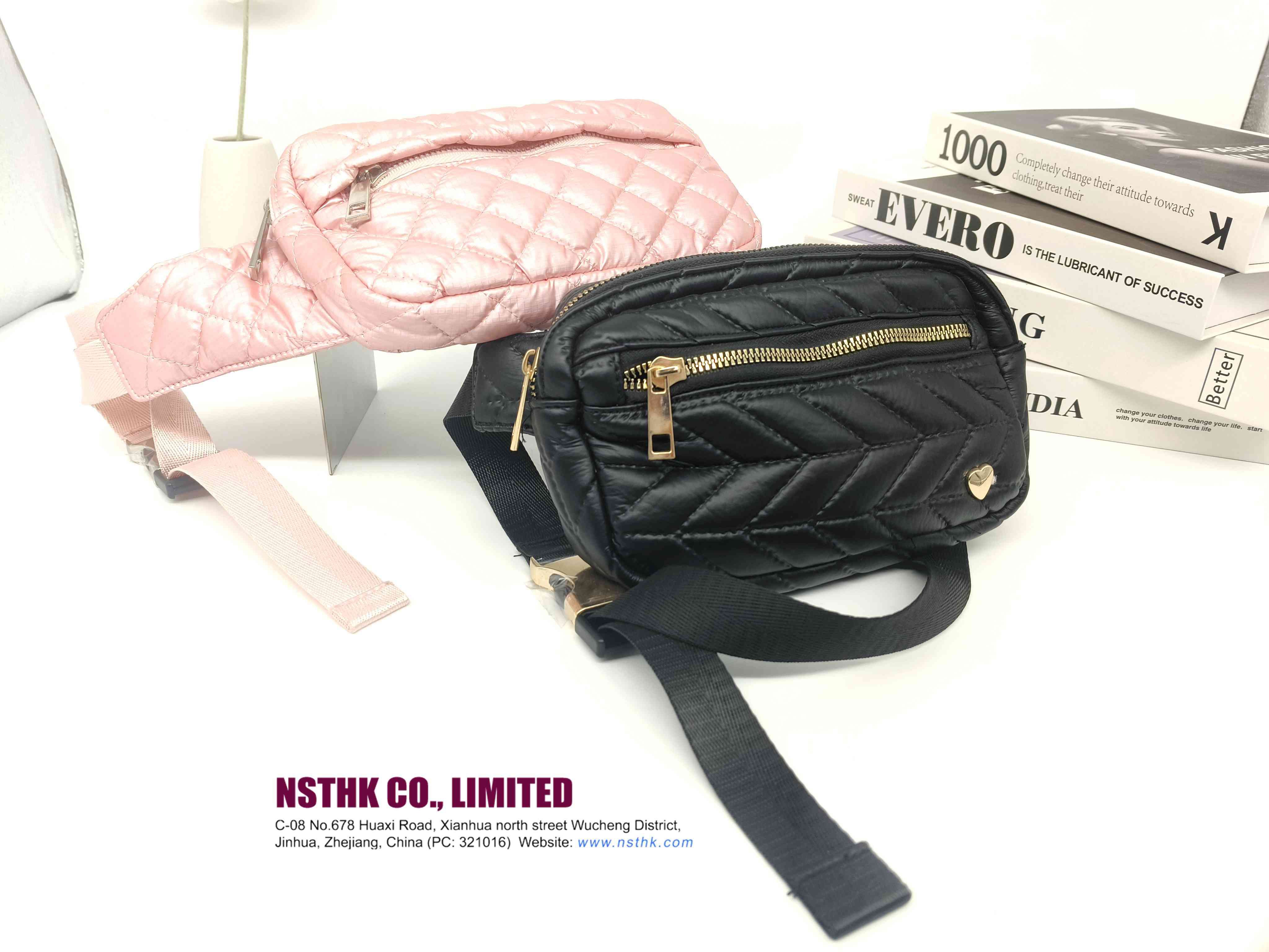 Description: Quilted Waist bag(F3766Q/R) Material: Polyester quilted material Lining:190T Belt:2.2cm width PP webbing Hardware:good quality metal Size: L18XH11.5X W3.0cm Logo: n/a Package:Flat packed, 1 x Silica Sachet,individual tissue paper wrapped. 100pcs/CTN/60x50x45cm/15kgs (rough only)
