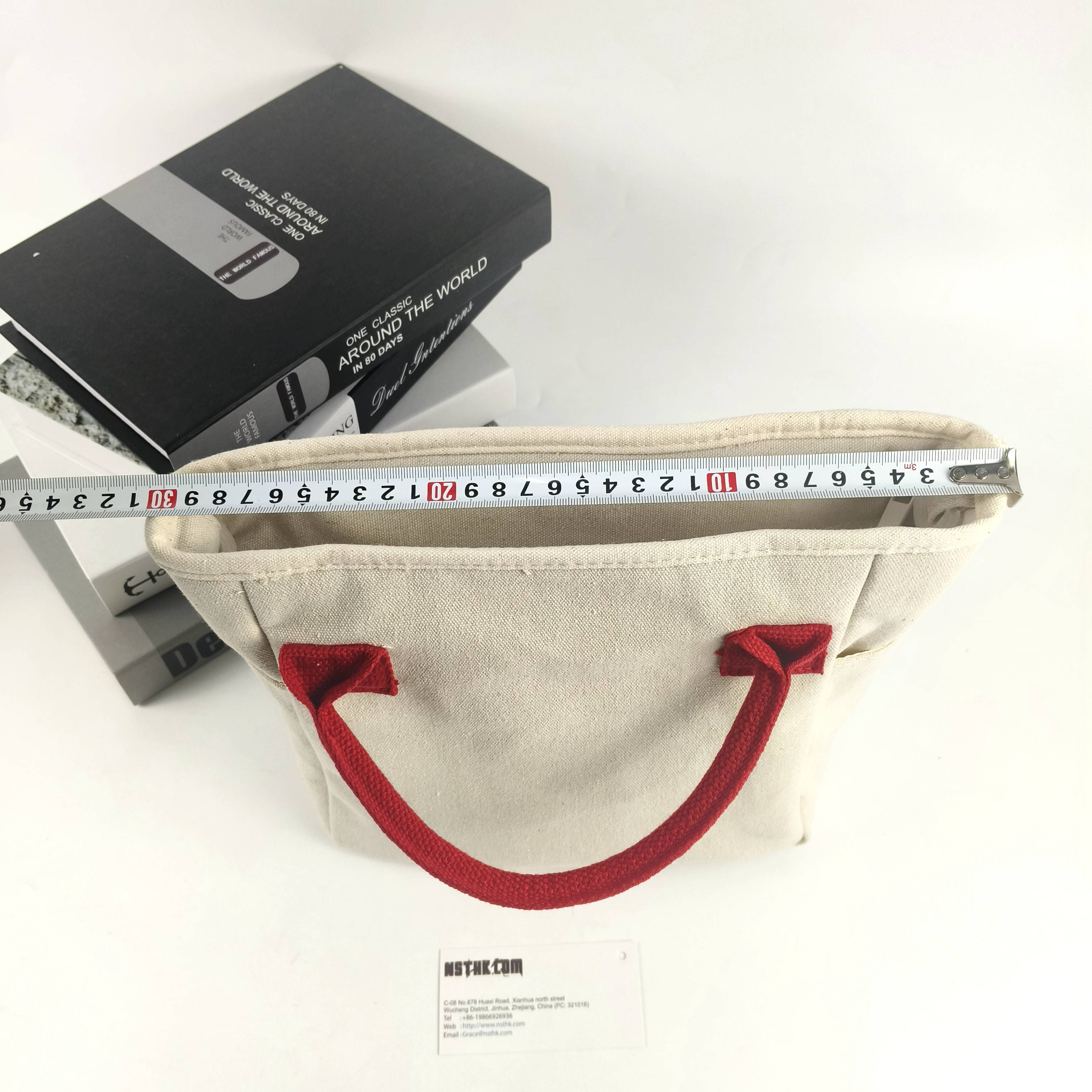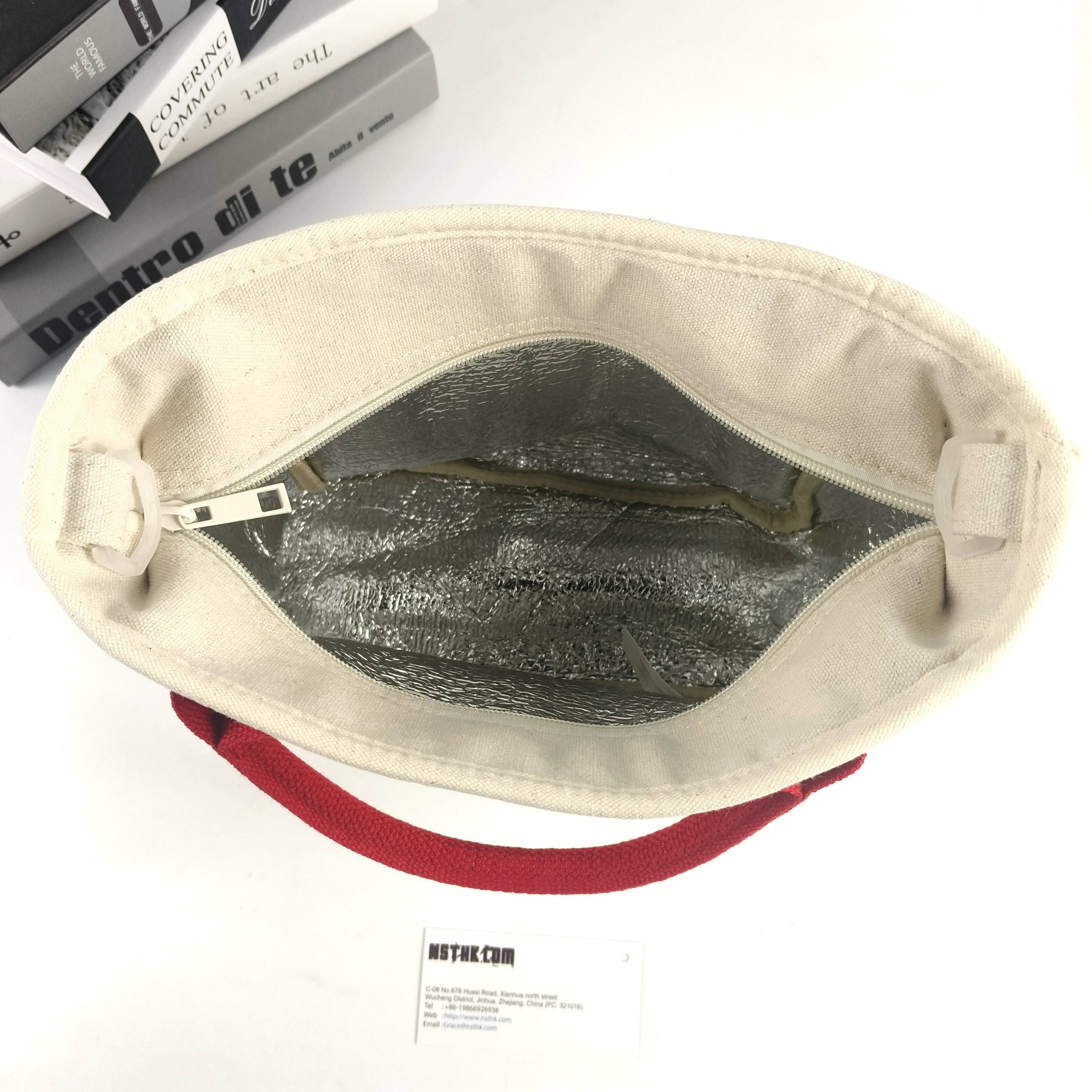 Cooler bag(F3768F) Size: ( L25 Base + Top33.5) x D13 x H21cm Material:Poly-cotton canvas Lining:2MM Aluminum Foil Composite PE sponge Zipper:Body material puller Clouser: 5#Nylon/Resin zipper Logo: n/a Package:Flat packed, 1 x Silica Sachet,individual tissue paper wrapped. Packing:50pcs/CTN/55X37X55cm/15kgs