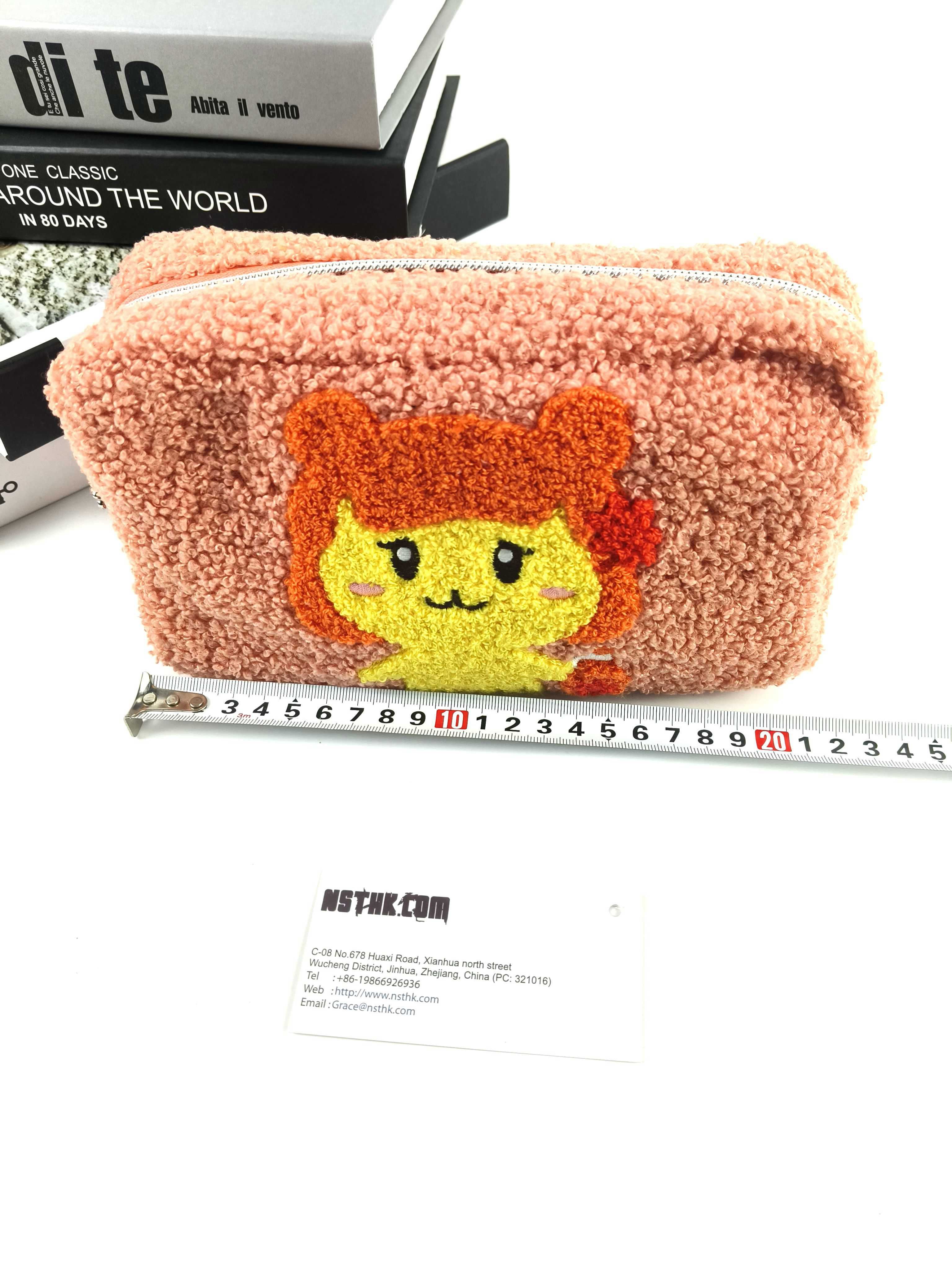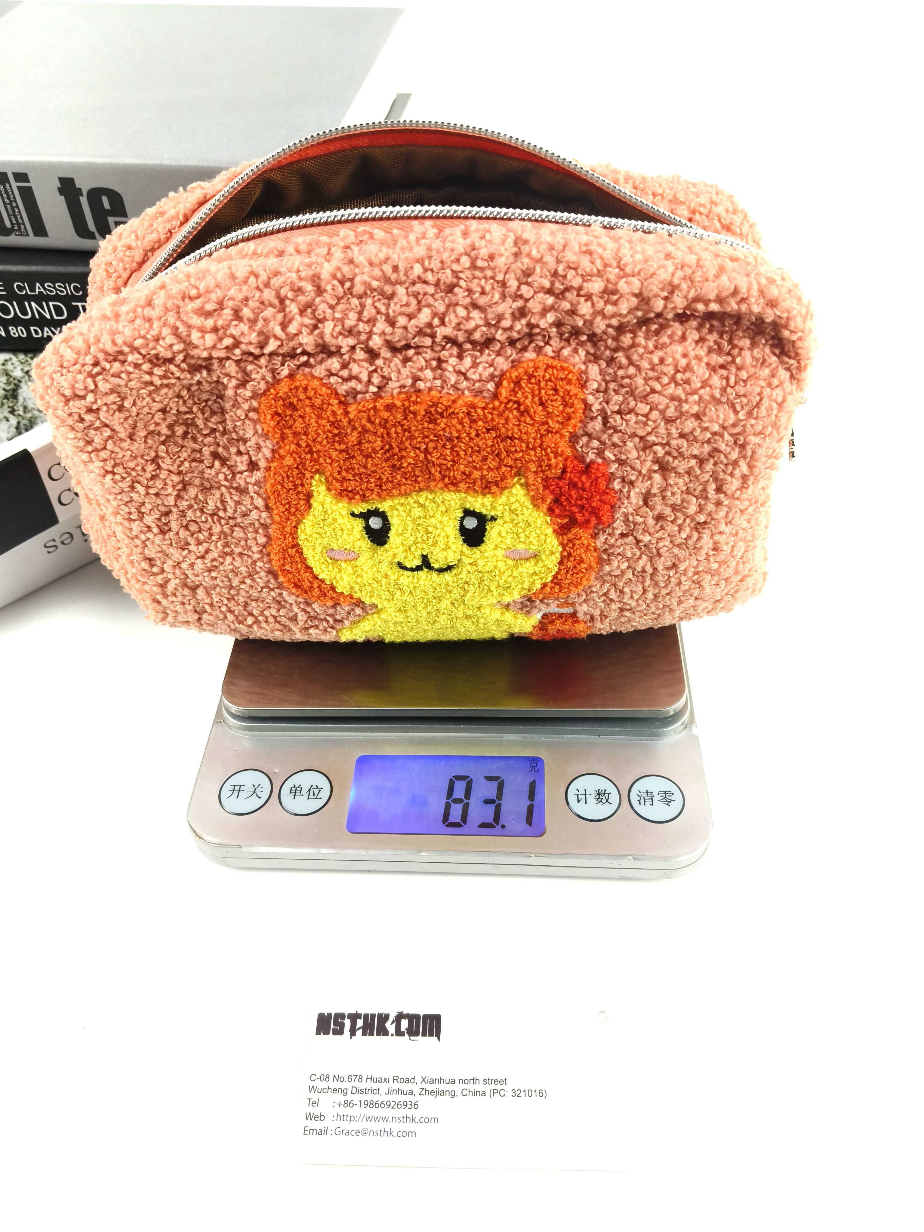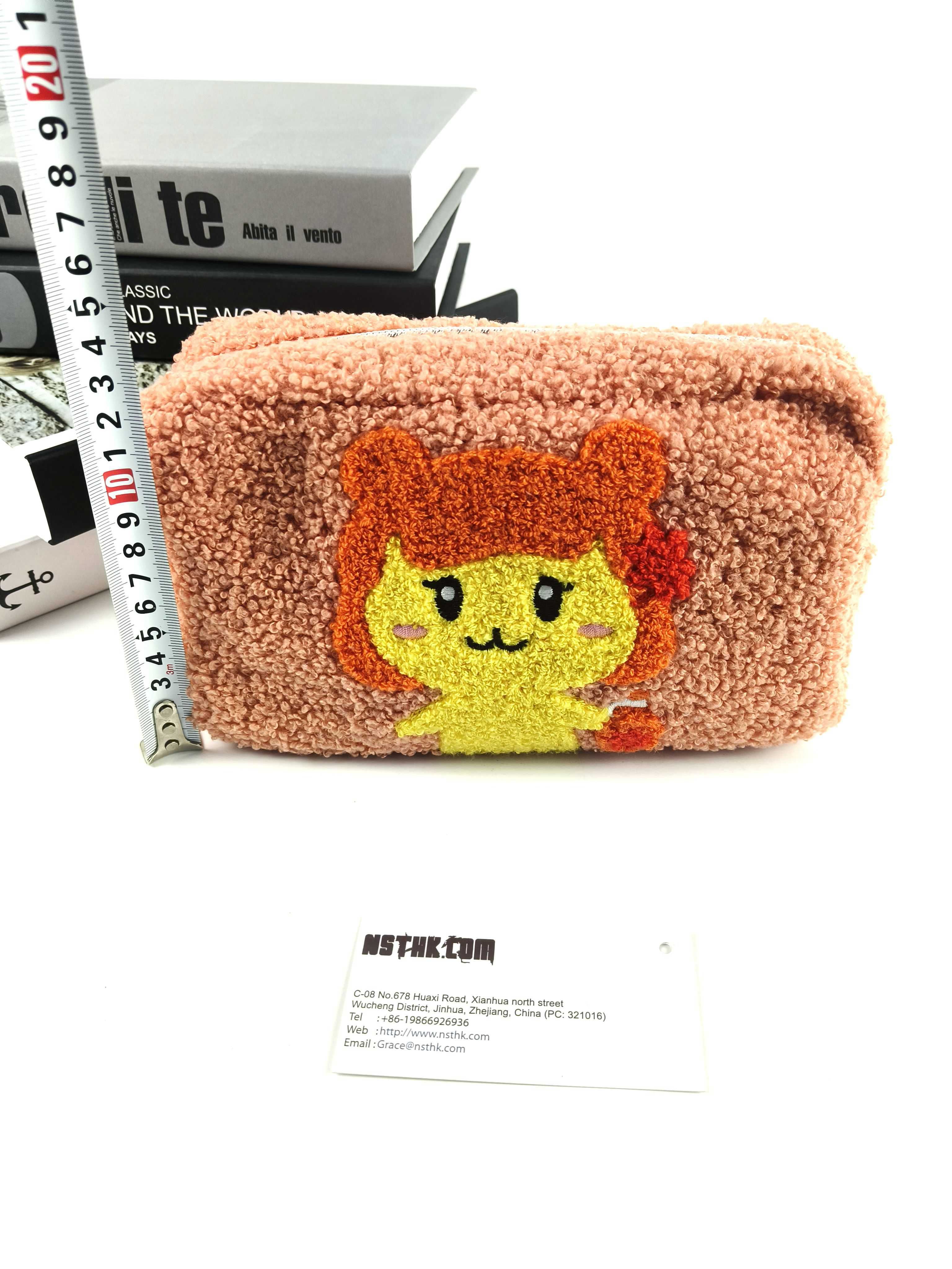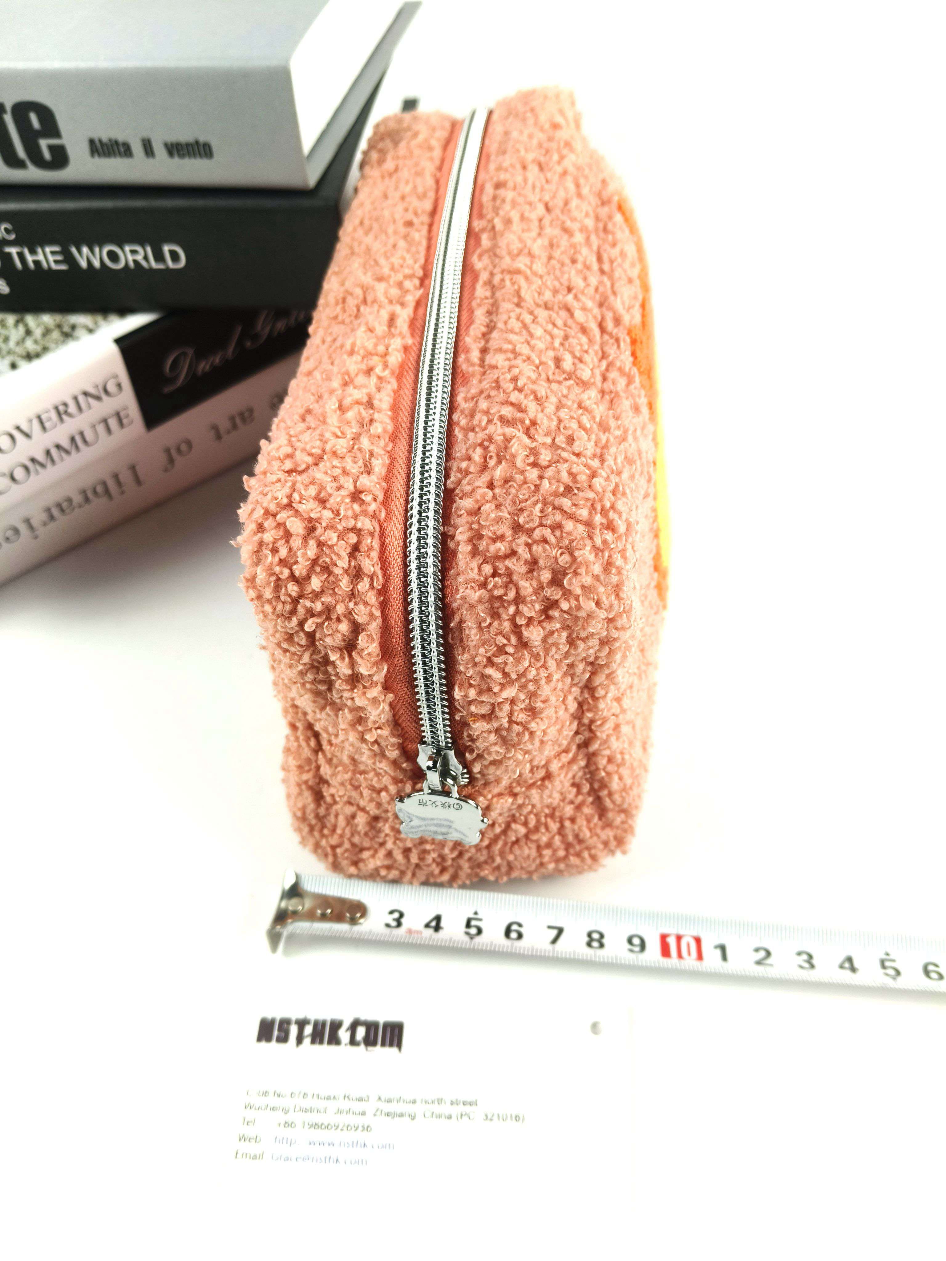 Item: Cosmetic bag(F3932) Size: L22 x D9x H12cm Material Main:Small particle velvet(polyester) Lining: Twill fabric(Polyester) Zipper:Metal puller Clouser: 5#Nylon silver zipper Inner pocket without zipper:22 x 8.5cm Logo: n/a Package:Flat packed, 1 x Silica Sachet,individual tissue paper wrapped. 100pcs/CTN/60X50X55cm/15kgs